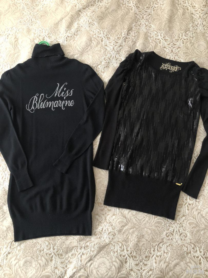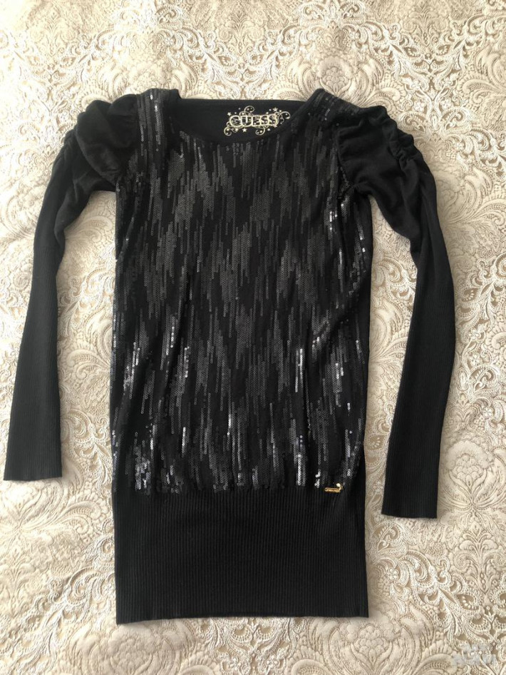 1) Платье туника Guess . Передняя часть украшена пайетками в цвет платья. Рукав красиво оформлен.