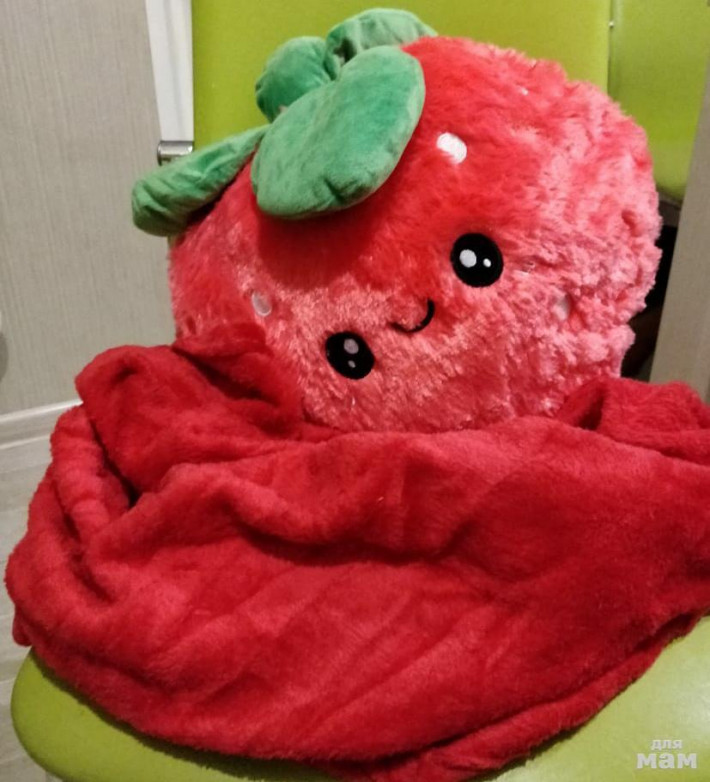 Мягкая и нежная подушка игрушка+плед размер пледа100*120 Стилизация клубника, прекрасно подойдет в качестве оригинального подарка! Или добавит в ваш интерьер нотку оригинальности и яркого цвета!