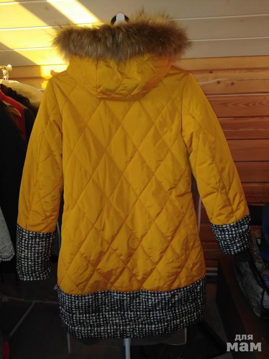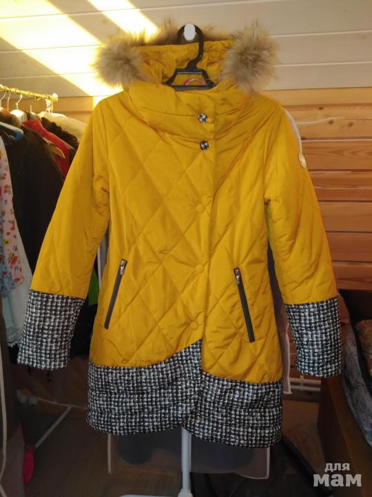 Фирма SHALUNY, в хорошем состоянии. Цвет горчичный с отделкой. Застежка молния плюс кнопки, высоки ворот и глубокий капюшон. Утеплитель изософт. Подклад флис, в поясе утяжечка. Отличное красивое пальто.