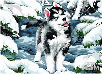 Картина по номерам PKC 43011 Маленький хаски 30*40 Эксклюзив - 400 руб бронь