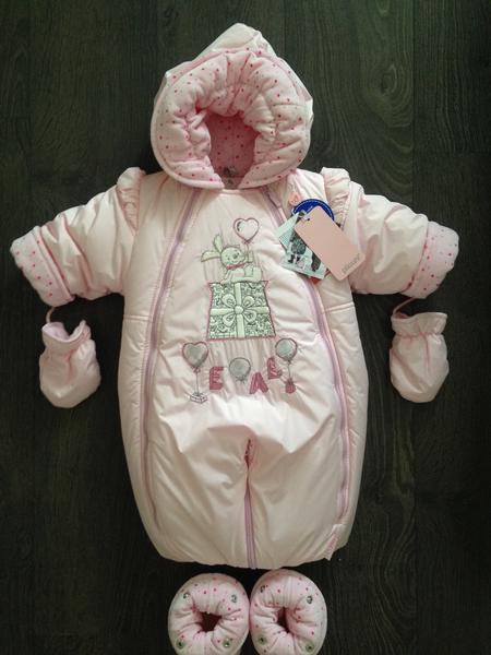 Комбинезон-трансформер "Зайка"Производитель:PilguniВ наличии размер: 74Цвет: розовыйСостав: наполнитель изософт теплый и легкий, подклад хлопокВ комплект входит: варежки, пинетки, подстёжка из овчины