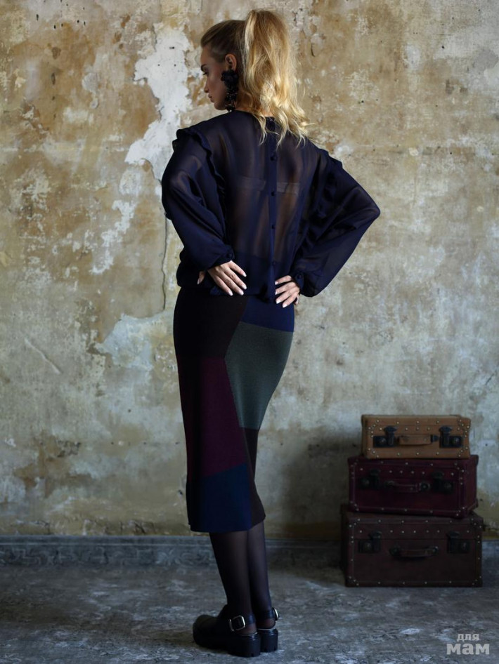 Узкая удлиненная юбка, выполнена в ластичном переплетении, которое держит форму, но хорошо тянется при ходьбе. На юбке геометрический абстрактный рисунок в лоскутном стиле, выполнен в живописной, сближенной по цвету гамме, делающей юбку особенно современной и стильной. Можно носить как с блузами, так и с джемперами. Юбка выполнена из приятной на ощупь пряжи