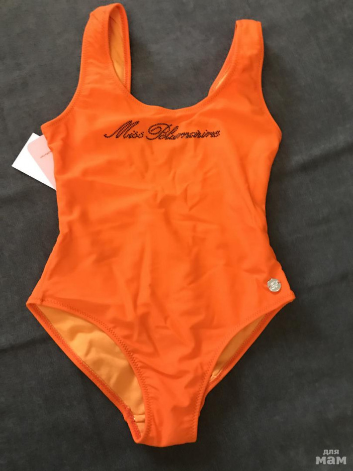 Абсолютно новый купальник Miss Blumarine. Размер xs, рост указан 134. Думаю, можно со 128. Двойной, не просвечивает. Качество на высоте. Цвет как на фото, насыщенный.