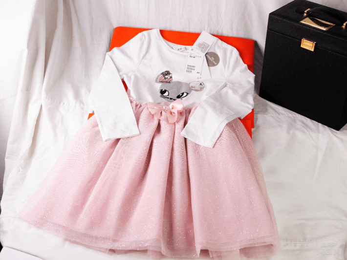 Это очень нежное и красивое платье, оно украшено тюлем и блёстками.