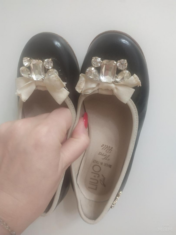 Немного отходит профилактика в области каблука ( см 2 фото ) это никак не влияет не на функционал не на внешний вид ,на ножку 19-19.5 см. Сколов трещин итд нет ,очень нарядные .