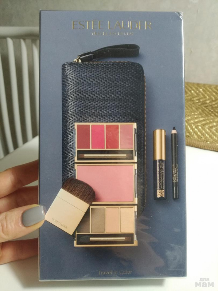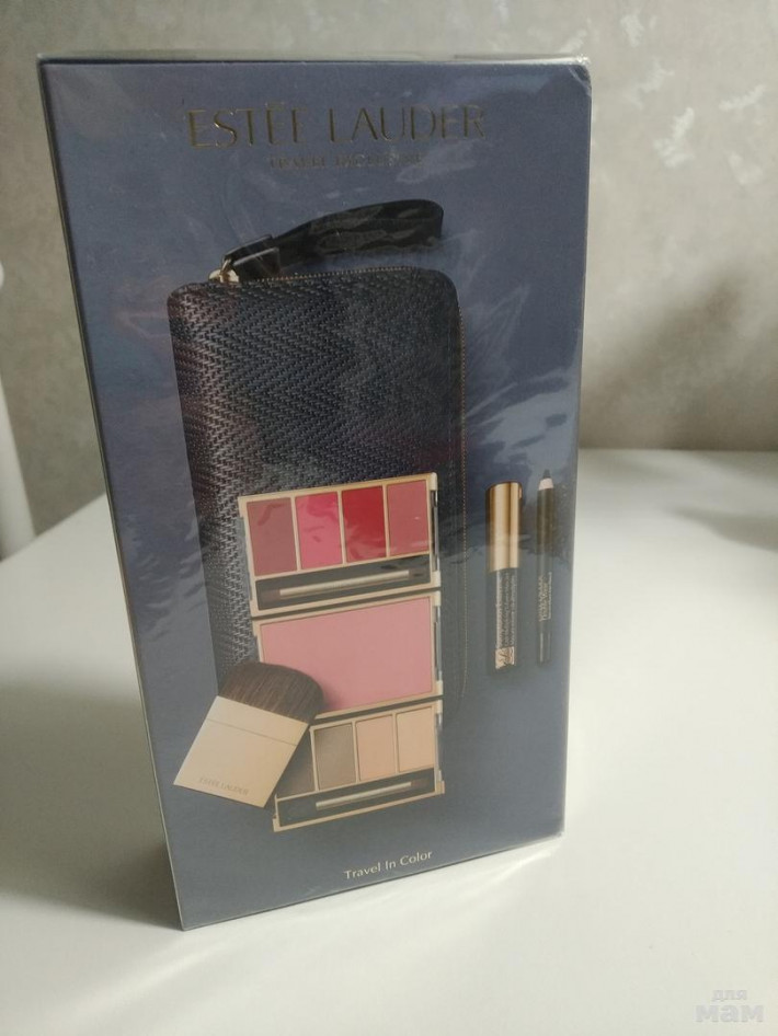 Набор в сумочке ESTEE LAUDER , оригинал. В набор входит румяна, тени, блеск для губ, тушь карандаш....100% оригинал...привезено из Нью- Йорка.....Цена огонь...Новый запечатанный в упаковку.... Цена 3000...