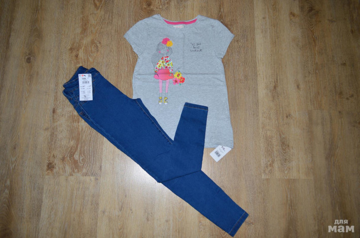 Новая с бирками футболка mothercare размер 10, рисунок не принт- аппликация, с разрезами и джинсы новые с утяжками размер 146, цена 650р. джинсы проданы.