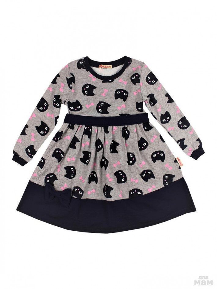 Платье для девочке с длинным рукавом и с оригинальным принтом , низ украшен кокетливым бантиком