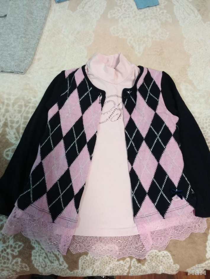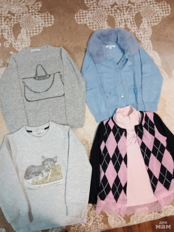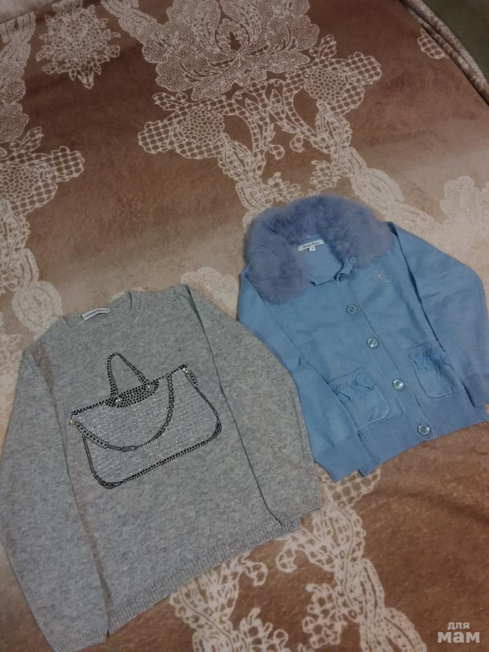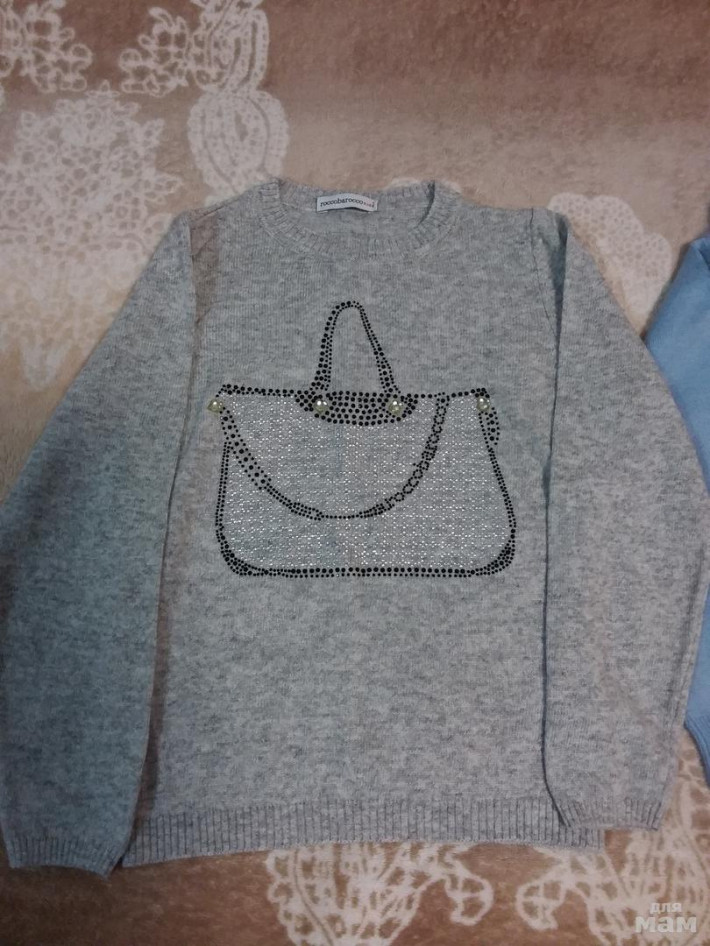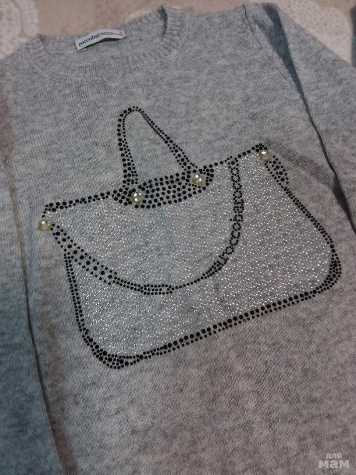 1)Свитер Roccobarocco стразы горят огнем, состояние нового, одет 1 раз, 4 года (Длина по спинке 44 рукав 43 пог 33) цена 2000
