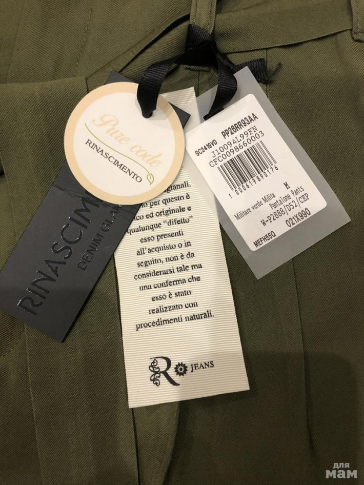Новые брюки, производство Италия, бренд Rinoshimento, размер М. Цвет милитари/хаки/олива. Ткань очень приятная к телу.