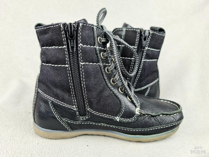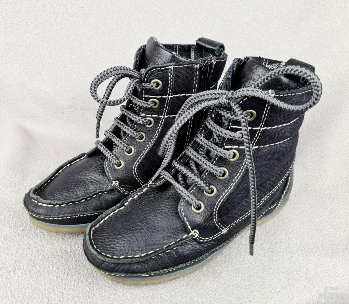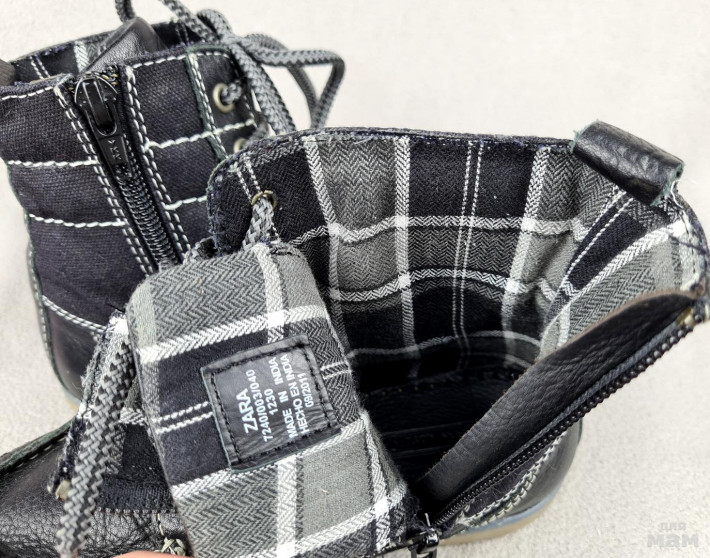 Стильные ботиночки Зара, унисекс. Комбинированные - кожа и текстиль. Сбоку молния. Подклад - текстиль.