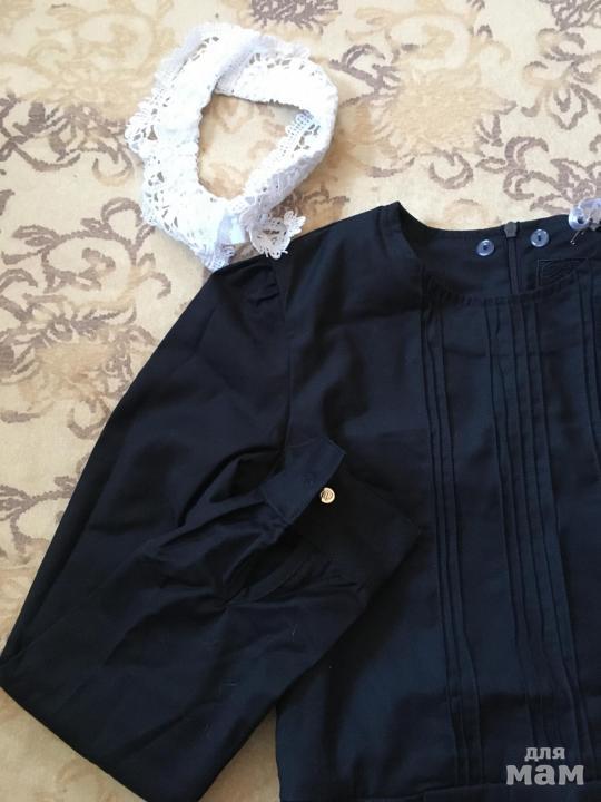 Почта. Сдэк. Новое. Маломерит. Воротник отстегивается. Есть подкладка хлопковая. Складки застрочены п,, так как новое.. На рост 152нам впритык, особенно в плечах(.
