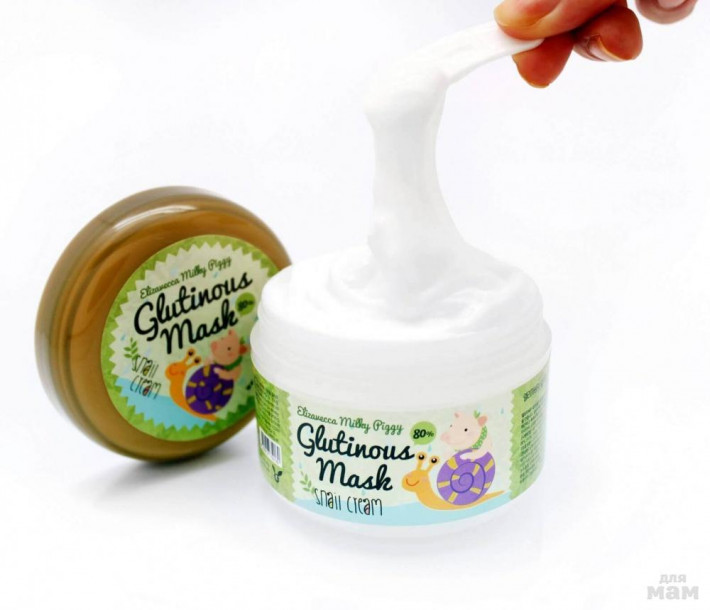Ночная восстанавливающая крем-маска для лица Elizavecca Milky Glutinous Mask 80% Snail Cream на 80% состоящая из муцина улитки, также содержащая в своём составе аргановое масло, ниацинамид, и аденозин. Маска — потрясающее-эффективное средство в уходе за любым типом кожи, особенно за обезвоженной, тусклой кожей. Средство способно мгновенно преобразить кожу уже после первого применения. Маска имеет многофункциональное действие и даёт следующий результат в результате использования: