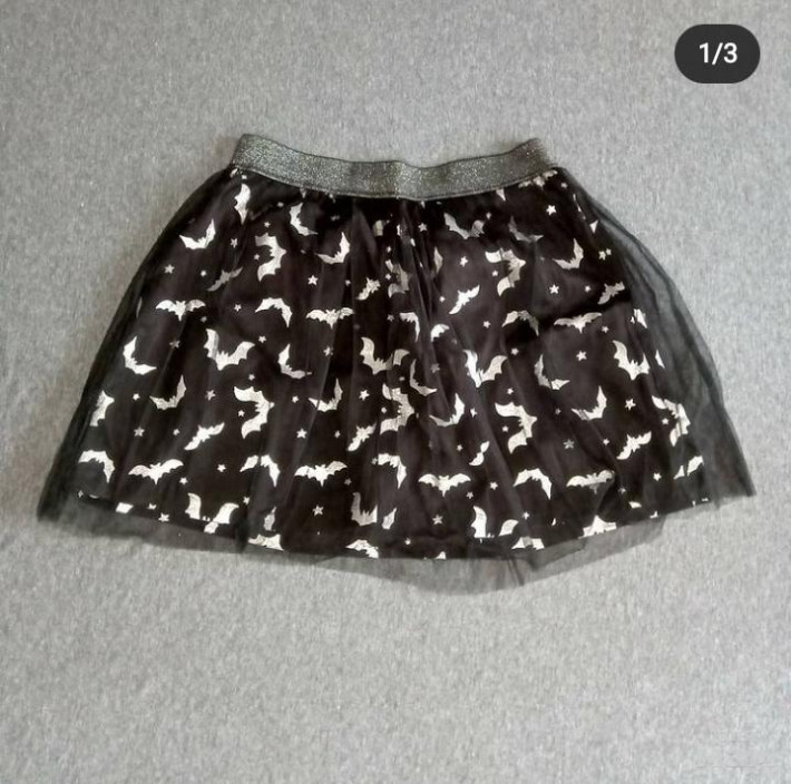 Новая юбка украшенная блестящими летучими мышками, возраст 12-13 лет - 450 рублей.