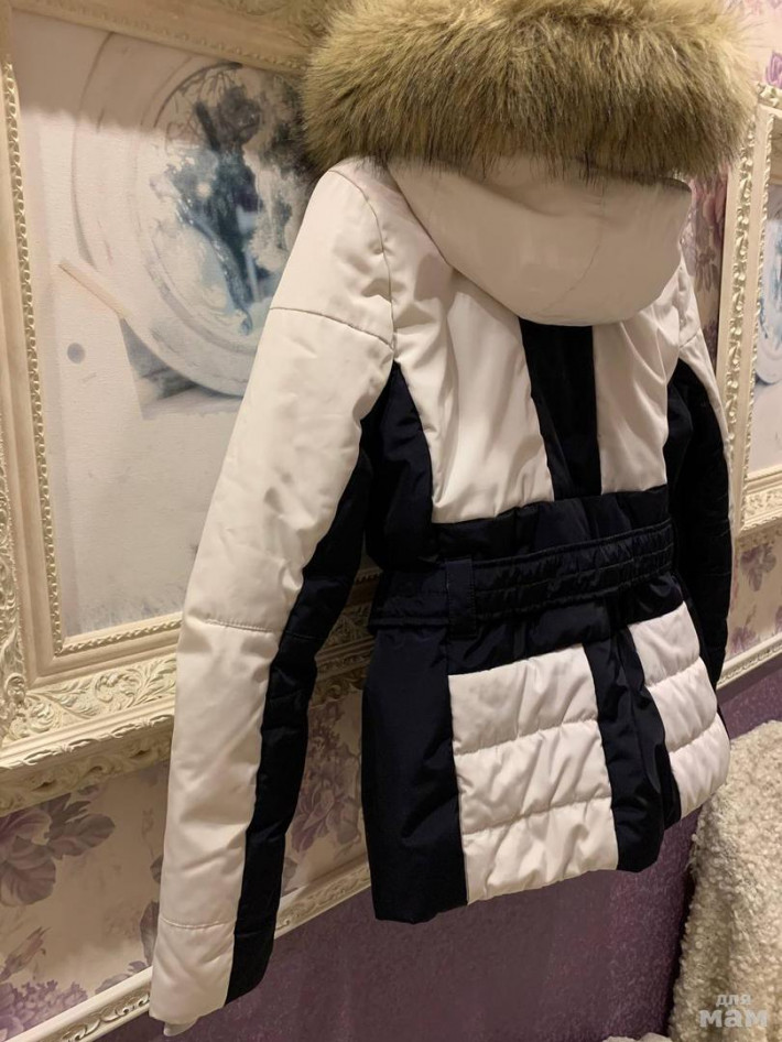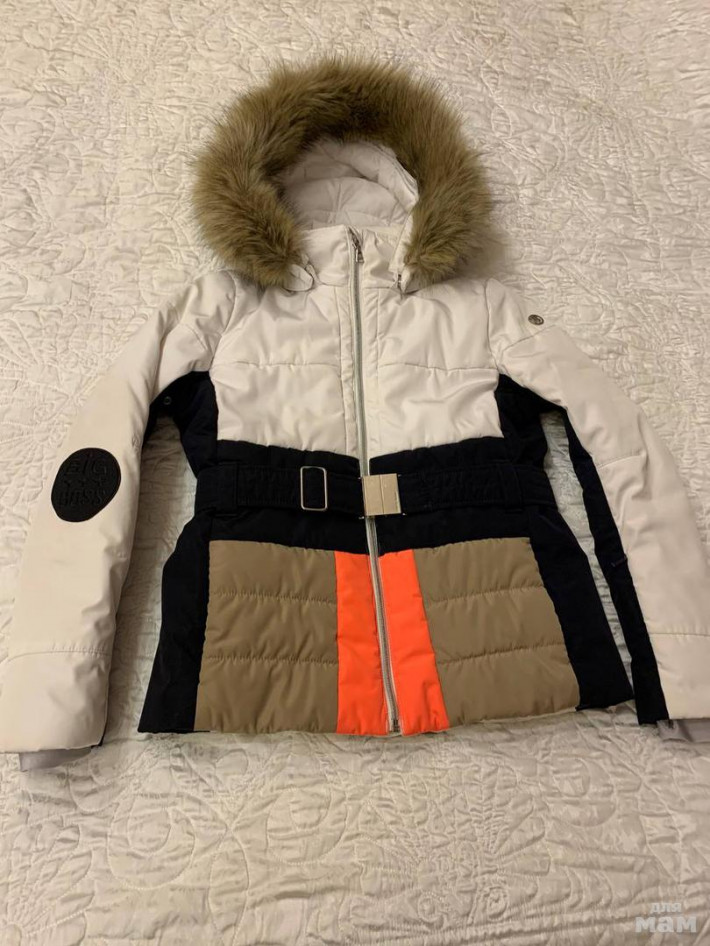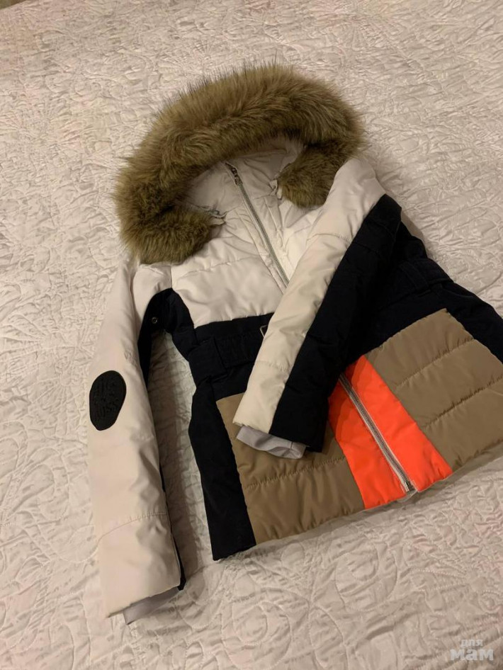 Носили очень мало. Стал быстро мал, выросла дочь. Очень очень красивый! Яркий! Стильный. Белоснежно-комбинированный. Теплый! Комфортный. Удобный. Размер стоит на бирке 12. Этот бренд обычно маломерит. Нам до роста 158 был хорошо. На 146-155 будет идеально.