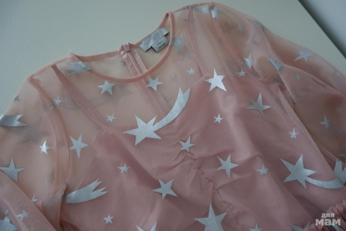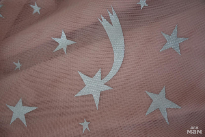 основа 100% хлопок, нежное, воздушное, цвет пудра, с пышной юбкой (двойная сетка), фольгированные серебристые звёздочки, смотрится потрясающе