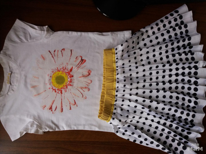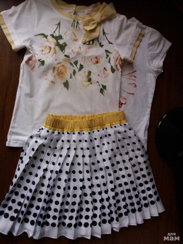 Костюм. Юбка Monnalisa 6 лет, футболки De Salitto, цена за все 1200р. Юбка новая, цена за юбку, футболки в подарок.