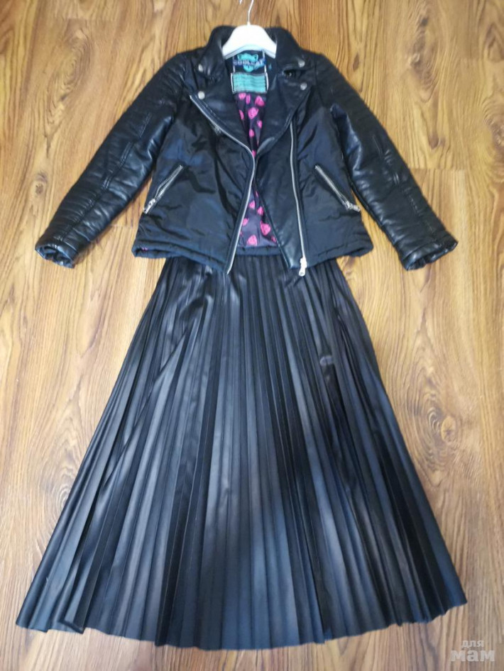 Классная куртешка по типу косухи....р.146/152, нам мала уже..... грудь и спинка по типу плащевки, рукава кожзам. Смотриться круто!