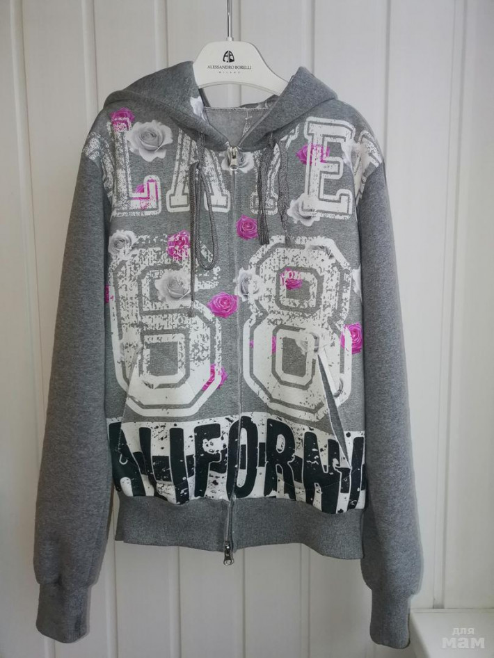 Толстовка на молнии р. М до 155см, очень красивый капюшон , розы внутри))) 500р