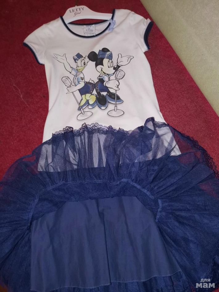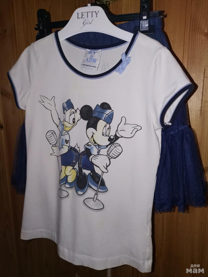 Футболка 10, юбка 9) но сидят отлично на 140см, и даже до 152 пойдет
