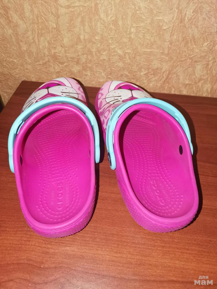 Новые Кроксы р.J 3 ( р.34/35) по стельке 23см примерно. Красивый сиреневый цвет. На ногу 21см уже комфортно) но продаем по причине перехапа кроксов .....