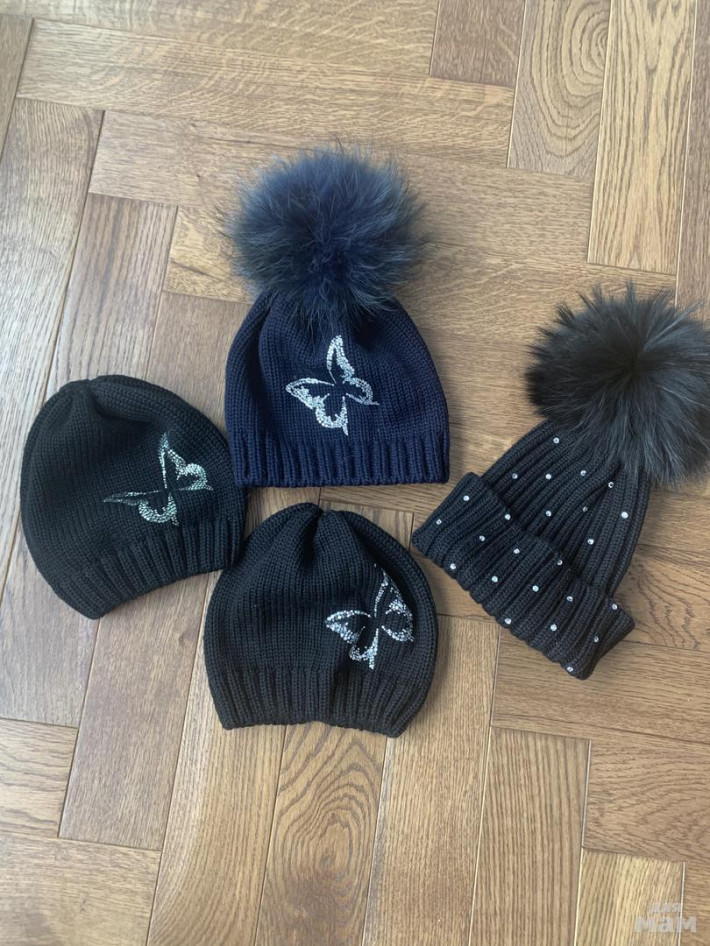 Шапки в новом состоянии 100% меринос, одели по разу, оч много шапок, самовяз, заказывали здесь у Виктории, не могу вспомнить Ник. Шапки оч качественные. Все шапки отдам за 3000 тыс. по одной с помпоном по 1500 , обычные 1000.