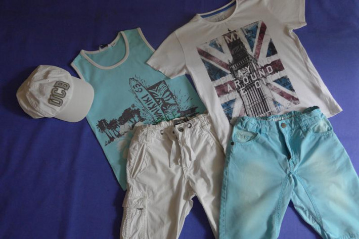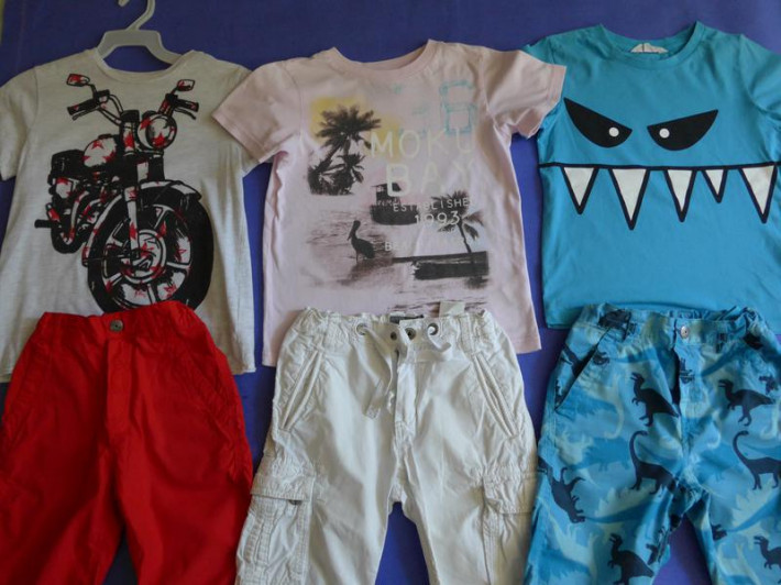 6. Футболка Lindex по маркировке р.110-116 ( в реальности 116- 122), 100% хлопок, идеальна для жары и моря. Также отлично смотрится с № 5. Длина -44.5 см, ширина -33 см. Цена 350 рублей.