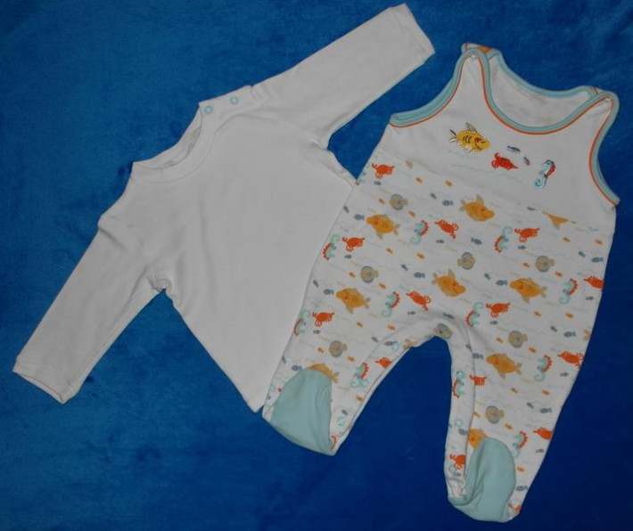 Комплект, кофточка с длинным рукавом (кнопки на плече) и полукомбинезон, в хорошем состоянии.