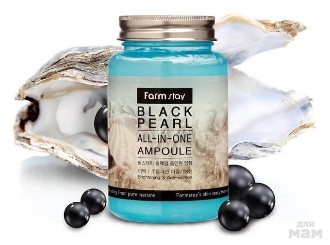 FarmStay Black Pearl All-In One Ampoule — это многофункциональная ампульная сыворотка для лица с экстрактом чёрного жемчуга. Она увлажняет и разглаживает кожу, уменьшает выраженность морщин, снимает напряжение и стресс, способствует восстановлению упругости и гладкости дермы.
