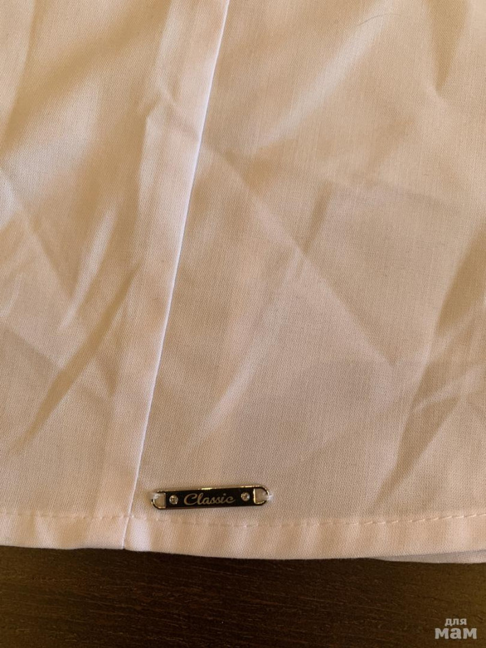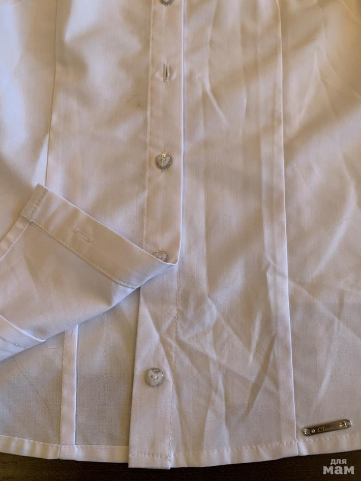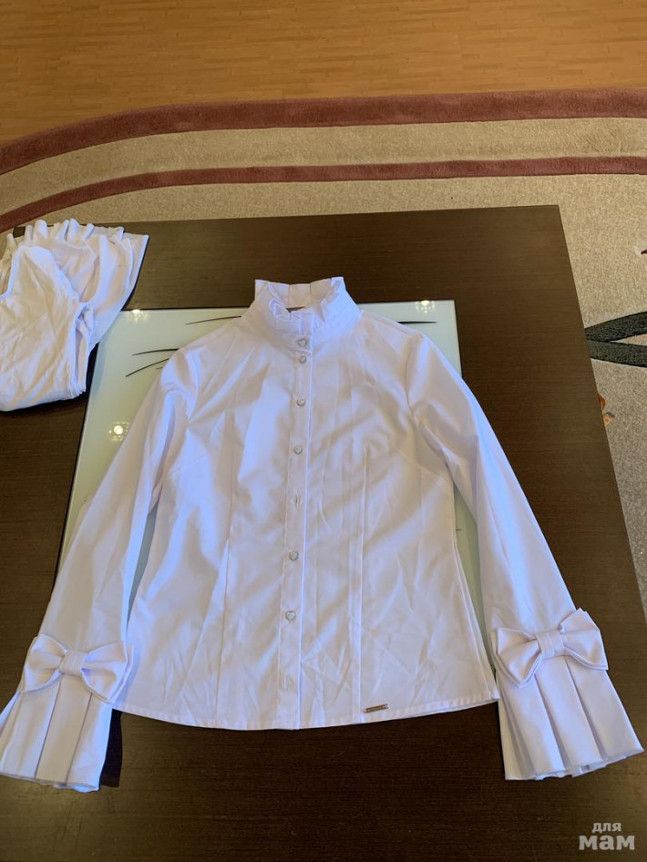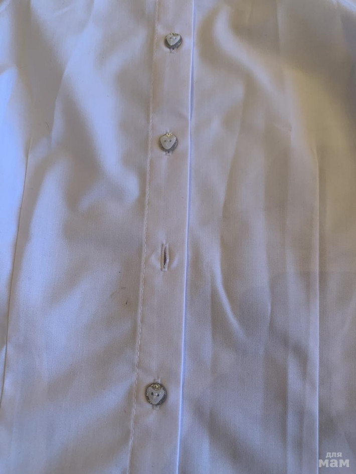 Блузку одели один раз, но поняли что мала уже. Нет одной пуговки и чуть мазанули, но фото есть. Не стирали!