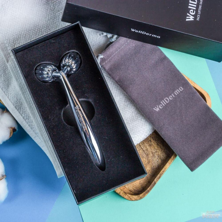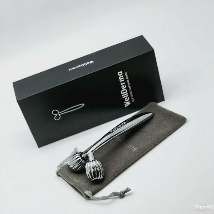 Роликовый массажёр для лица WellDerma Face Lifting Dark Silver Roller с платиновым покрытием предназначен специально для контурного массажа лица и зоны декольте.