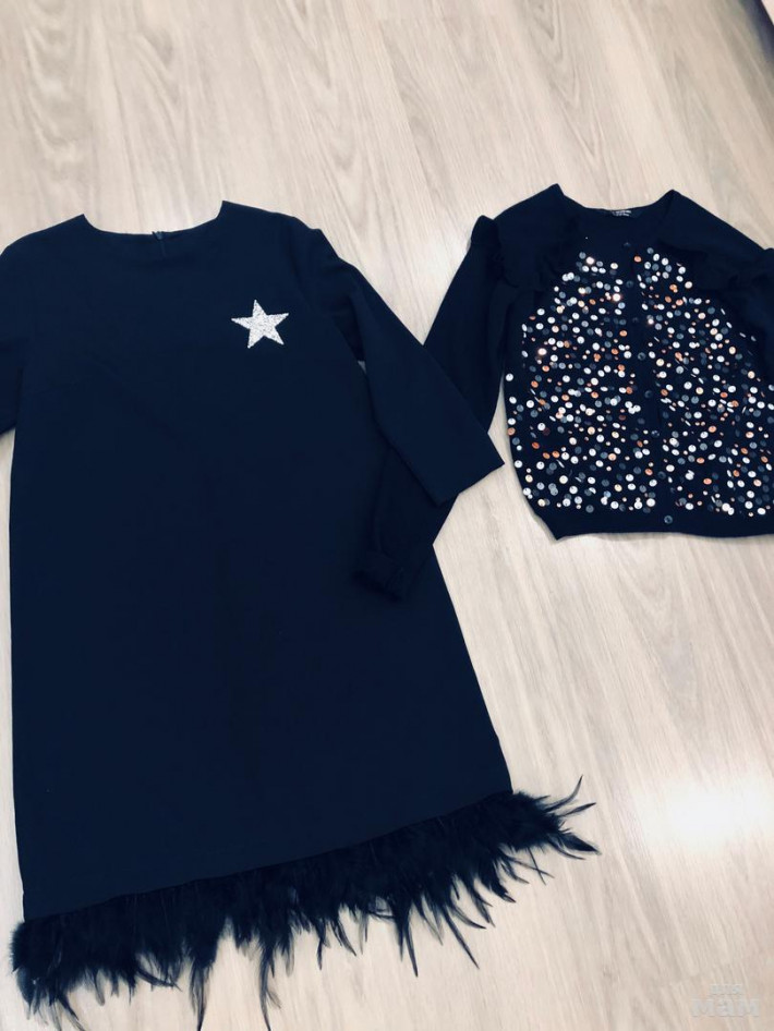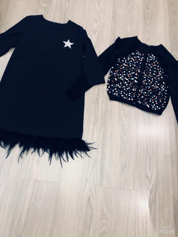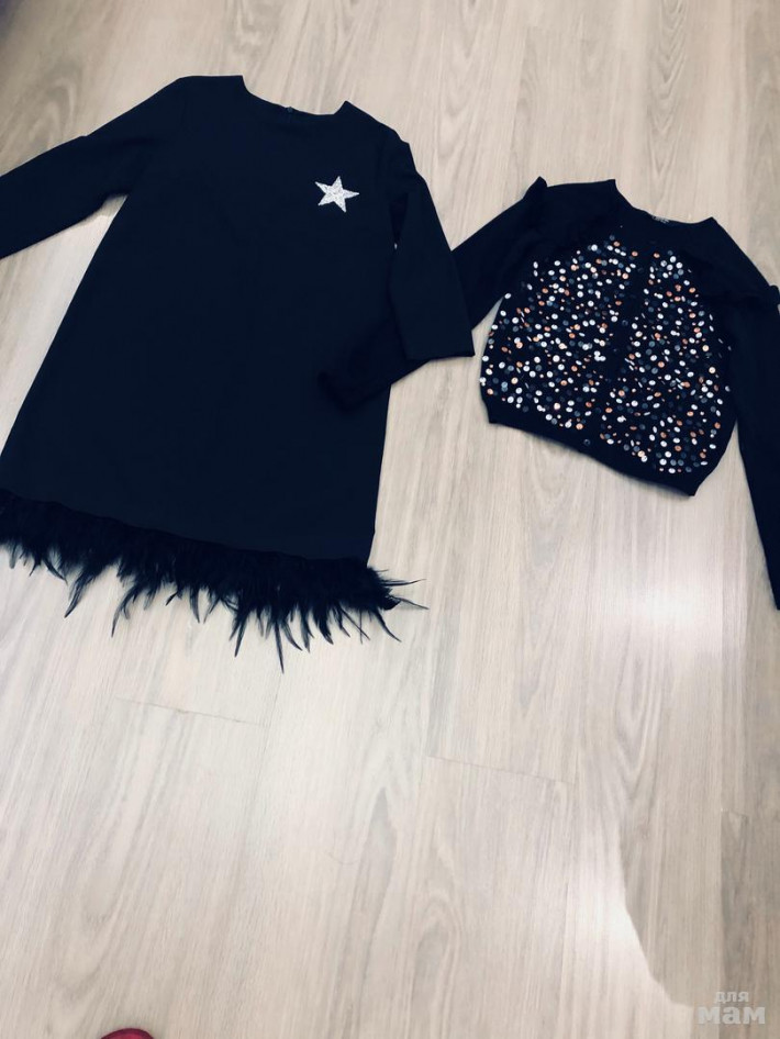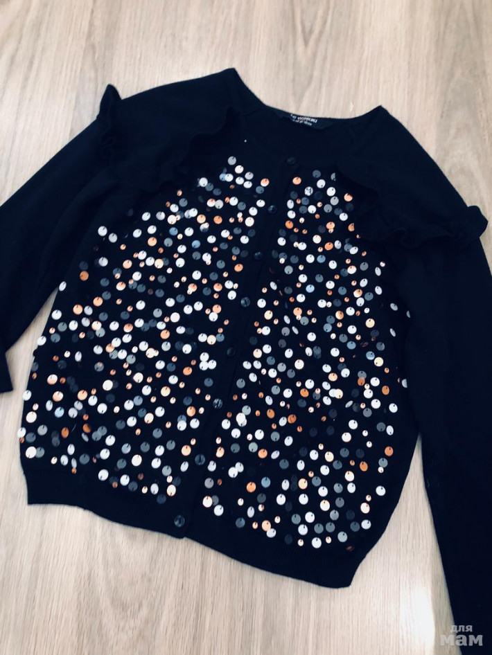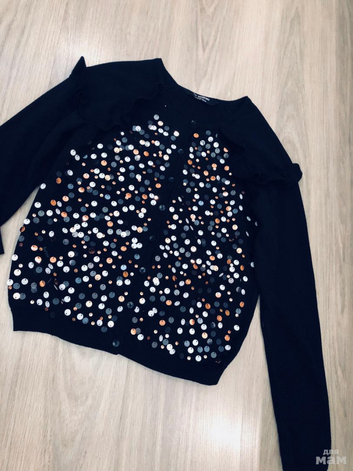 Новая трикотажная кофточка к платью черная с рюшей и пайетками к платью в комплекте.