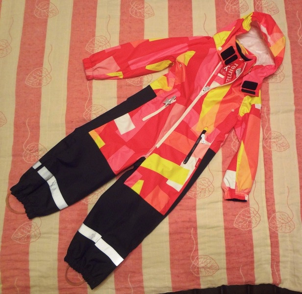 REIMA Syenite Kiddo, ветровочный комбез на сетке (без утеплителя) размер 110. Б/у раза 4. Состояние идеальное. Есть утяжка в талии (внутри) нижняя часть (штанины) усиленна - плотная кордура. При электрическом свете цвет ушел в оранж, на самом деле в нём много розового. Завтра перефоткаю при дневном))