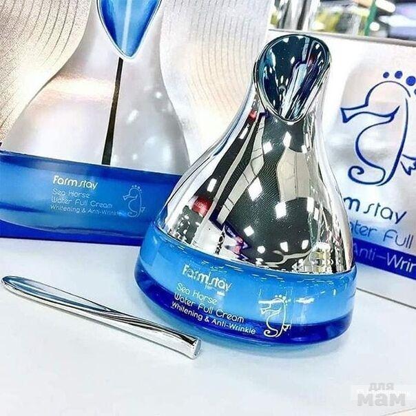 Антивозрастной крем для лица FarmStay Sea Horse Water Full Cream с экстрактом морского конька, максимально увлажняет дермальные ткани, разглаживает морщины, повышает упругость кожи и подтягивает овал лица, преображает уставшую, тусклую кожу, освежает цвет лица.