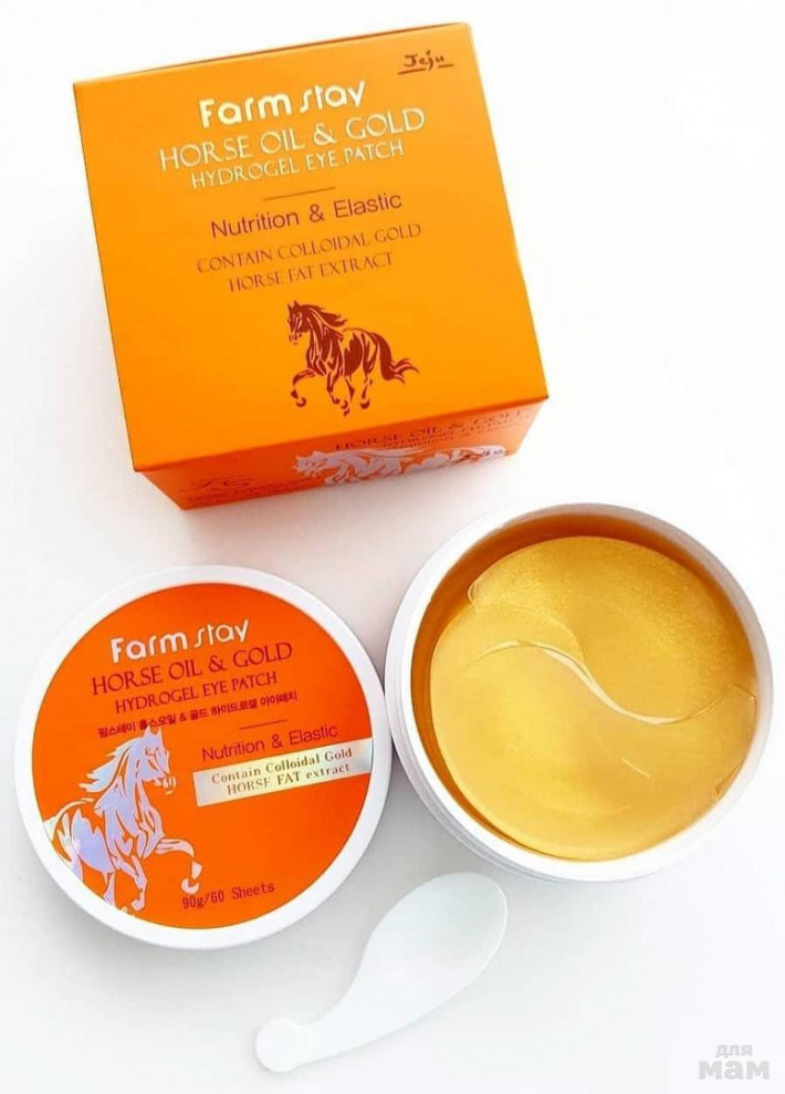 FarmStay Horse Oil & Gold Hydrogel Eye Patch — это гидрогелевые патчи для век с лошадиным жиром и коллоидным золотом. Они улучшают состояние кожи, разглаживают её, восстанавливают упругость и эластичность.