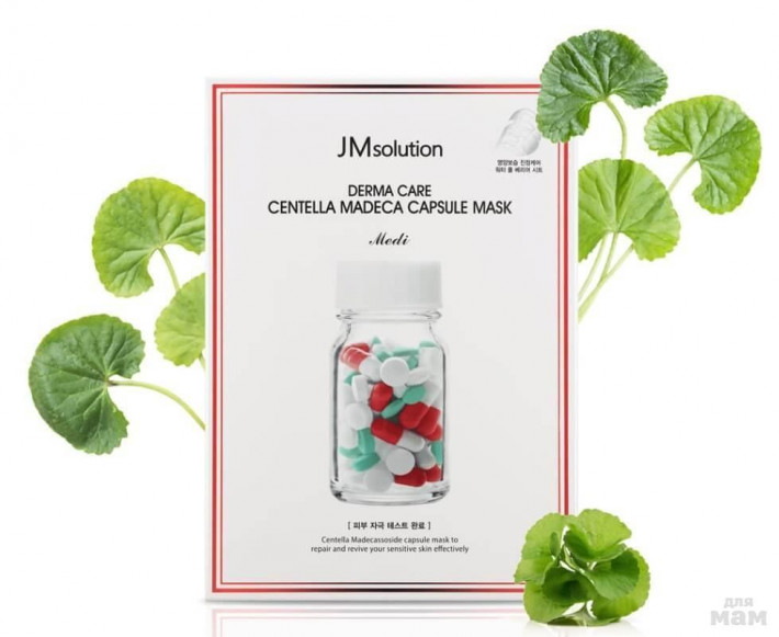 Успокаивающая целлюлозная маска с центеллой азиатской JMsolution Derma Care Centella Repair Capsule Mask для проблемной и чувствительной кожи.
