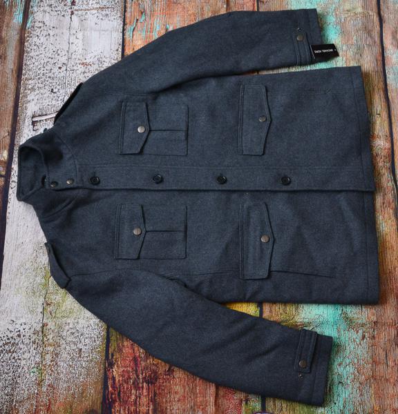 Пальто с легким милитаризированным оттенком, не длинное, однобортное, застёжки пуговицы с гравировкой бренда, воротник-стойку можно закрыть двумя кнопками, четыре накладных кармана (функциональных), и один внутренний, на плечах – погоны, в области локтей-нашивки.