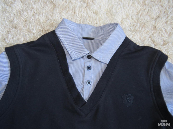 Джемпер (б/у) для мальчика- рубашка-обманка,отличного качества фирма "Ostin". Идеальный вариант для школьного образа.Джемпер лёгкий приятный к телу, в процессе носки не вытягивается, не линяет.Идет размер в размер.Размер: 152 (11-12лет). Длина от плеча/спина 55 см, рукав 54 см, грудь 44 см.Джемпер в идеальном состоянии, потертостей на локтях и катышек нет. Состав: Верх1: 60% хлопок,40% полиэстер; Верх 2: 100% хлопок.Тип ткани: футер/поплин (в полоску),полуприталенная посадка,прямой силуэт.Длинные втачные карманы,рубашечный воротник.Покупала за 1600р.Встреча:только!м.Лермонтовский проспект.
