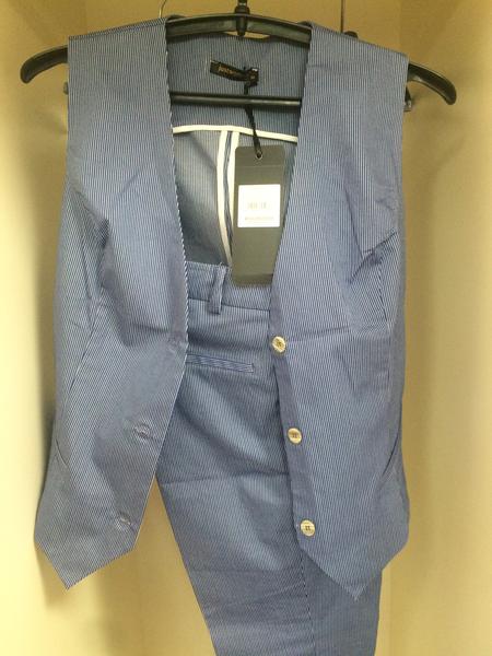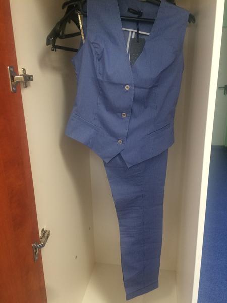 Пристраиваю супер костюм производства Турция, фабричное качество, ткань тонкая. В мелкую полоску. Цвет синий. Размер 40 на 44-46. Берите не пожалеете! Скинула))) продавала за 2000р.