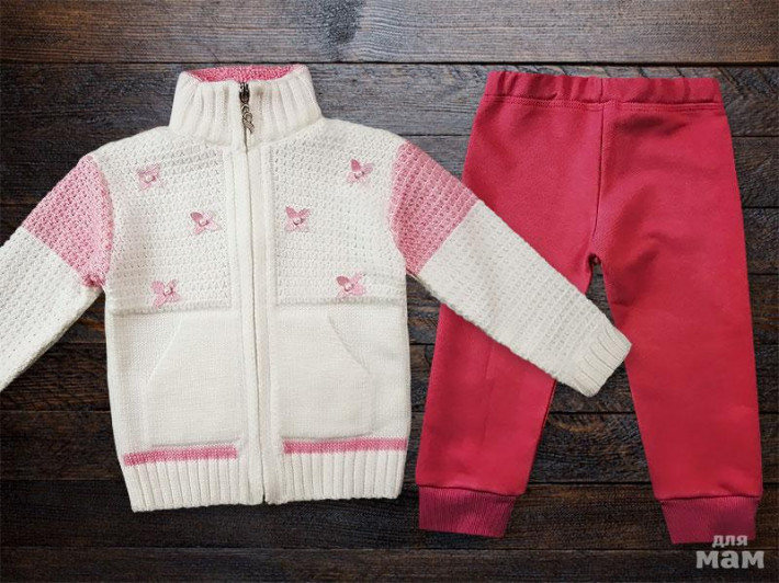 Костюм для девочкисвитер на молнии, штанишки на манжетахСостав: хлопок / акрил Размеры: 92; 98