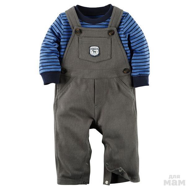 Костюм Carters - новый, Штаты. Трикотажный комбинезон и футболка с длинным рукавом. Размеры 9м, 12м. 1200 рублей