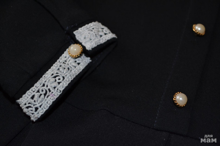 2. Платье темно-синего цвета, из плотного трикотажа. На воротничке и манжетах тесьма из кружева, пуговки с жемчужинками. По бокам есть кармашки. Очень простое и в тоже время, очень нарядное платье. Размер 122, подойдет на рост 116-122см. В отличном состоянии. Замеры на фото.