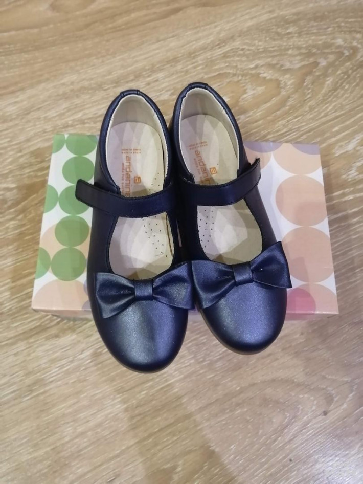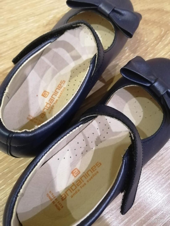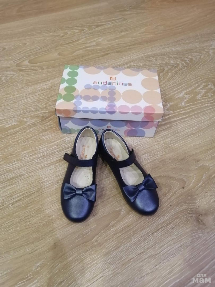 Очаровательные туфельки из натуральной кожи. Очень мягкие, красивый цвет, синий с небольшим перламутровым блеском. Подкладка также из натуральной кожи. Лаконичные, подойдут практически под любой наряд. Совершенно новые. К 1 классу дочке были великоваты, а ко 2-му будут уже маленькие.