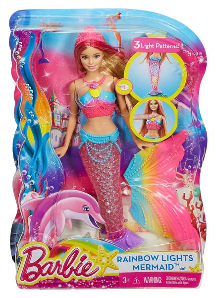Очаровательная Барби-Русалочка откроет тебе секреты морских глубин! Скорее окуни ее в воду и любуйся: хвост куклы станет переливаться всеми цветами радуги! Нажми кнопку на ожерелье Barbie, чтобы включить ее, а потом опусти куклу в ванну или в бассейн. Когда она окажется в воде, замигают цветные огоньки. Можно полюбоваться на них и на берегу - нажми кнопку на ожерелье, и световое шоу начнется даже без воды.