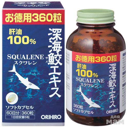 Жир глубоководной акулы (99,6% сквалена) ….. 1800 мг