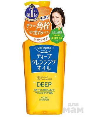 Гидрофильное масло очищения кожи и снятия макияжа Kose Softymo Deep Cleansing Oil подходит для снятия водостойкой туши для ресниц, растворяет bb cream и другой макияж.