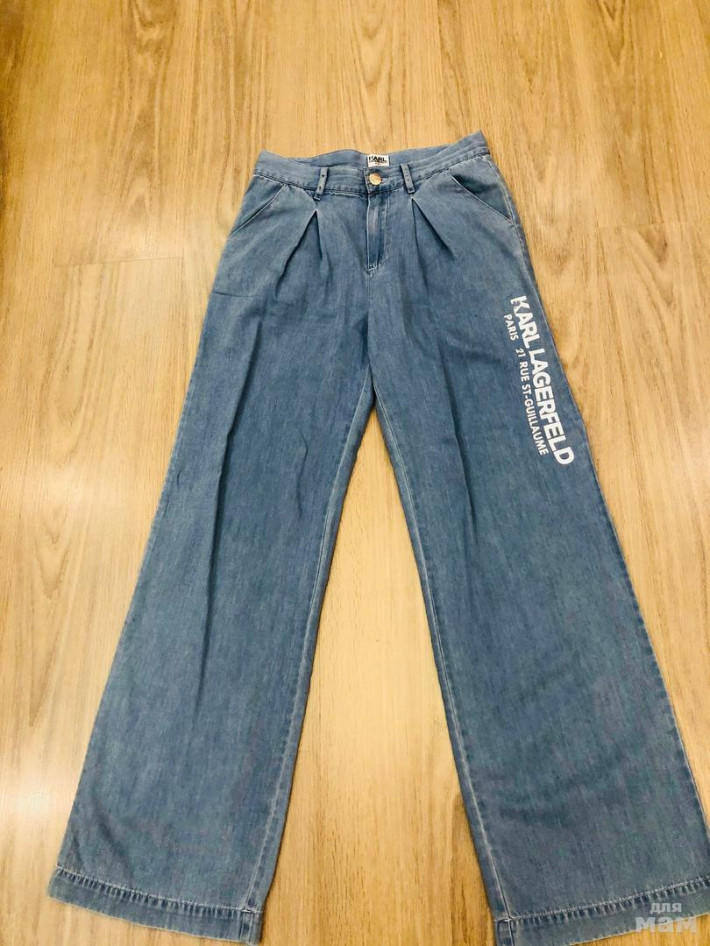 Стильные брюки KARL LAGERFELD (Италия, оригинал), расклешенная модель, тренд сезона, натуральная ткань, р.14 лет, одевали один раз, надеялись носить этим летом, переросли.