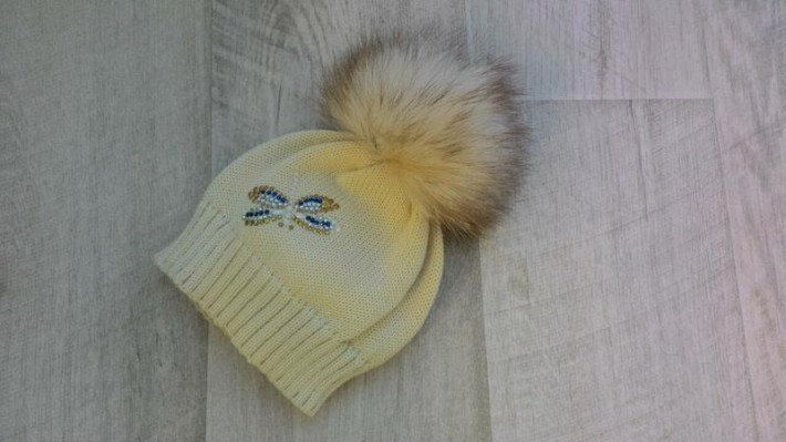 с меховым помпоном 1700руб на ог 50-52см цвет сливочный