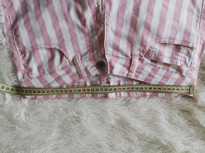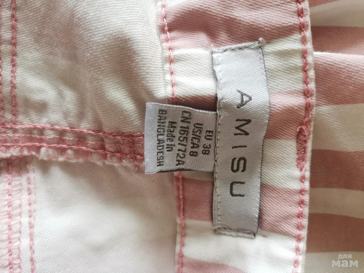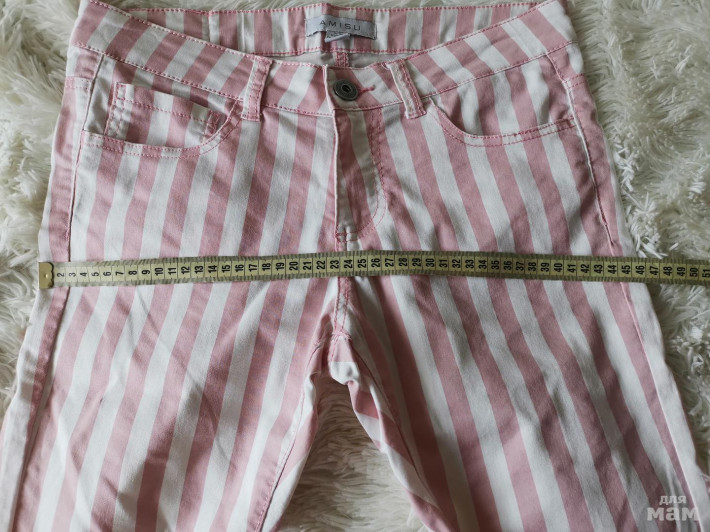Купила под наши топы розового и белого, но нам велики в талии, утяжки нет(((( приятная розово-белая полоска.