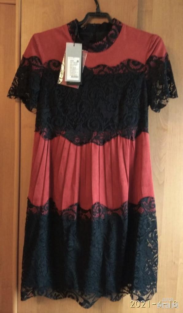 Комбинированное из ткани похожей на мягкую замшу и кружева, линия талии завышенная.